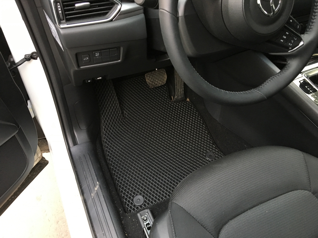 EVA коврики для автомобиля Mazda CX-5 2017 - н.в. — это лучший выбор. Покрытие из этого ячеистого полимерного материала покупают сотни автолюбителей. Коврики из ЭВА долговечные, прочные, красивые. Сроки службы изделий — от 5 лет. Они не выделяют вредных веществ, ничем не пахнут. Коврики защищают пол автомобиля от грязи и влаги, а салон — от лишней пыли.